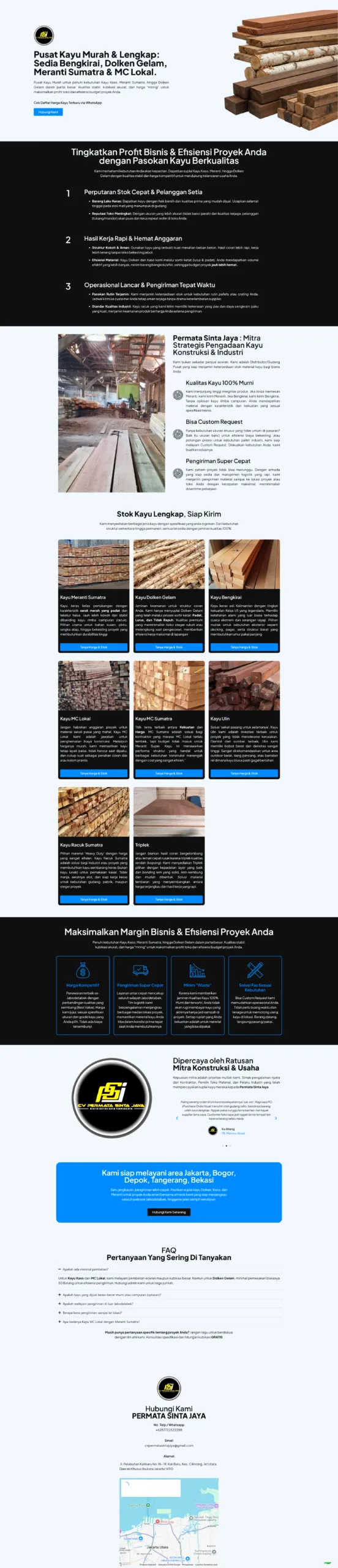 Deskripsi Proyek: Proyek ini merupakan pengembangan Landing Page strategis untuk Pusat Kayu Murah, sebuah lini bisnis dari CV Permata Sinta Jaya yang bergerak di bidang penyediaan berbagai jenis kayu konstruksi dan material kayu berkualitas. Fokus utama dari proyek ini bukan sekadar profil digital, melainkan sebuah instrumen penjualan yang dioptimalkan untuk mendukung kampanye Google Ads, guna menjaring calon pembeli secara cepat dan tertarget.